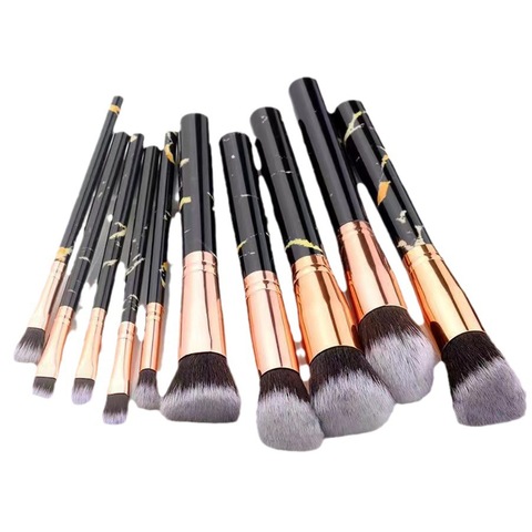 Hot Sell 10pcs Black Gold Soft Marble Plastic Cheap Makeup Brushes